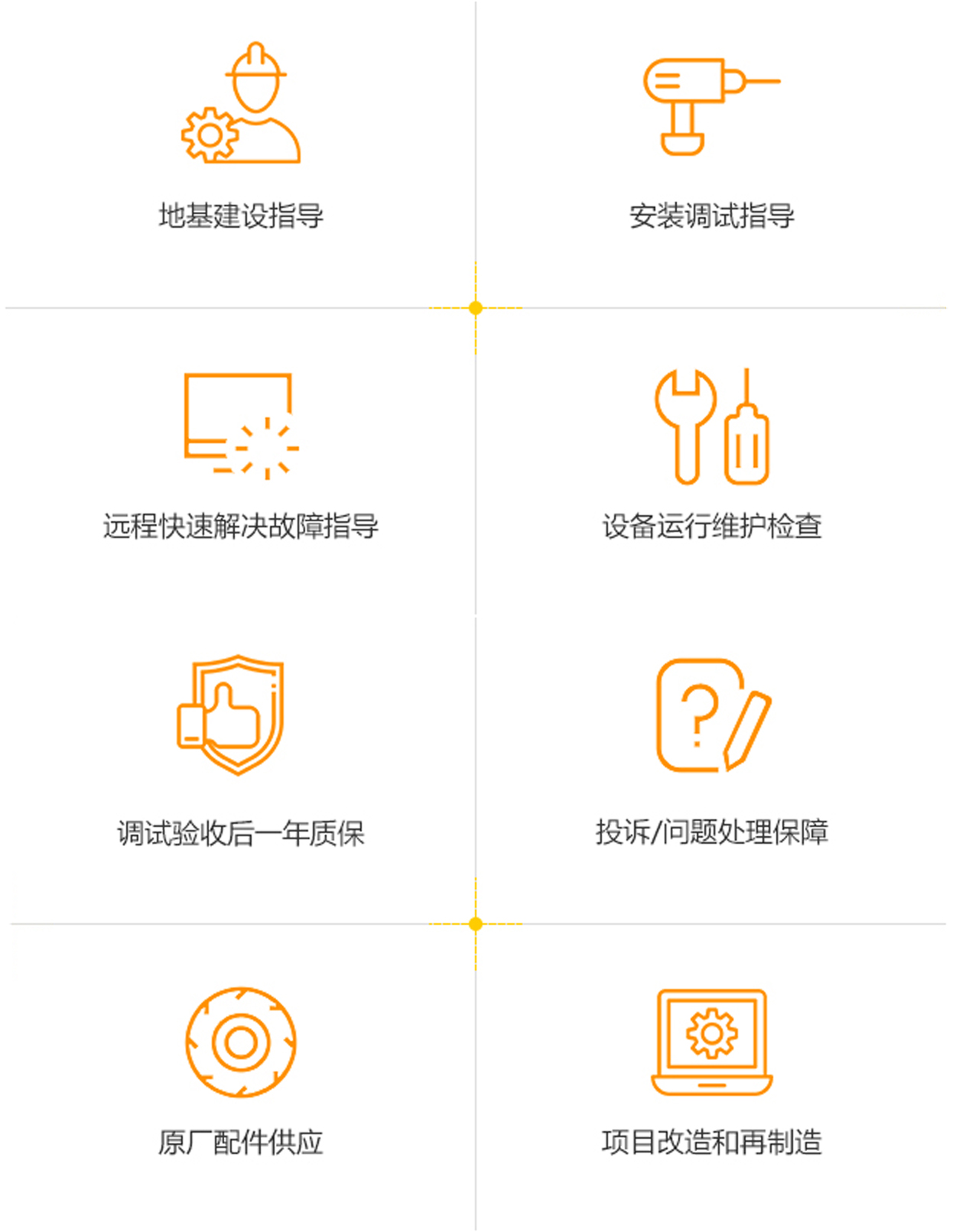 售后服務的流程大致可分為三個階段包括安裝、調試、投料運行。設備從投料運行之日起開始質保。在質保期內,售后人員還予以提供故障排查,設備維護,以及故障解除方案等服務。
